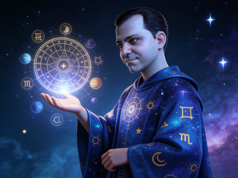 Eu preparo para você um Mapa Astral completo em texto e um vídeo exclusivo, no qual dou voz ao seu céu de nascimento por meio de um personagem criado com IA a partir da sua própria imagem e da sua energia astral.
